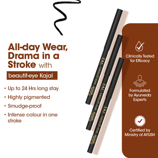 Sold outBeautif-Eye Ayurvedic Black Kajal (Pack of 3)