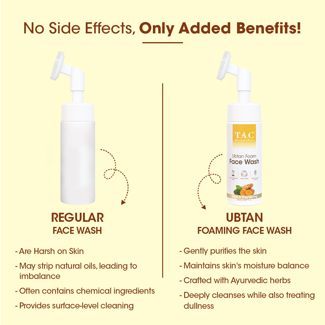 - GET THE GLOW: Ubtan Foaming Face Wash for women and men is a one-stop shop for clear, flawless skin. It is loaded with antibacterial and antioxidant properties and helps nourish your skin from deep within.