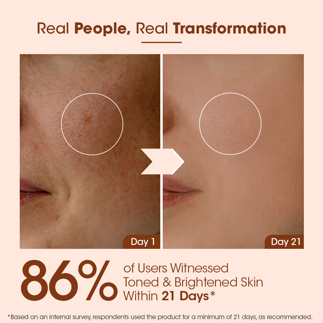 Vitamin C inhibits the enzyme tyrosinase crucial for melanin synthesis that lightens hyperpigmentation & even out skin tone.