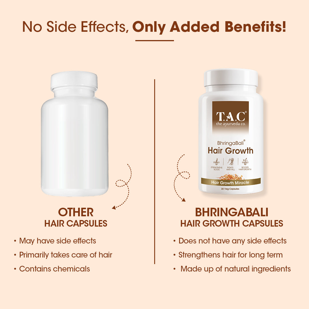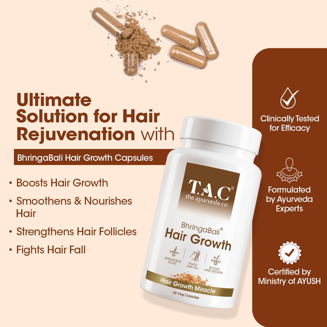 Rejuvenate Dull Hair Bhringabali herbs in our capsules rejuvenate dull, lifeless hair, restoring vitality and shine.
