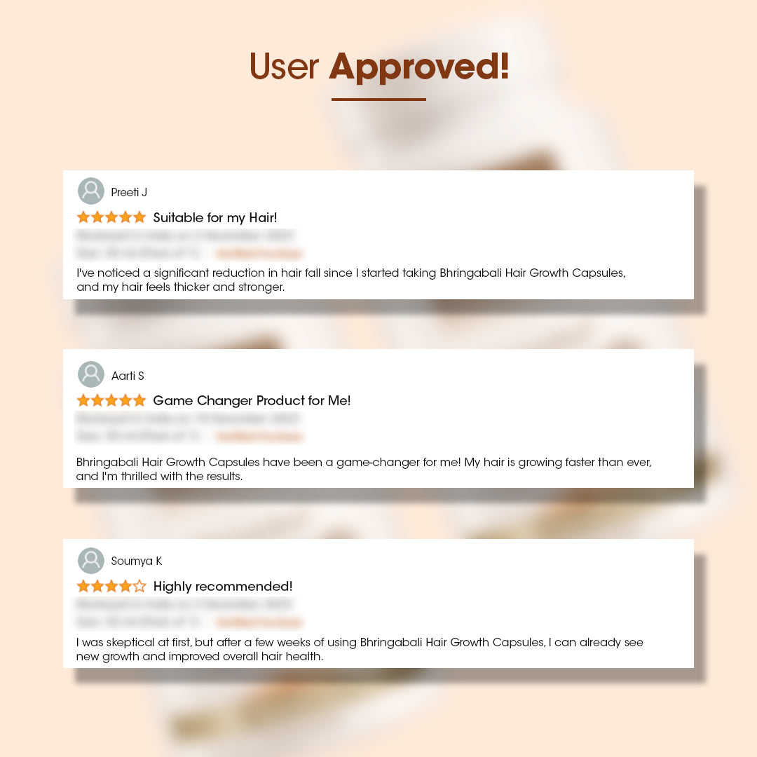 Strengthen Hair Bhringabali Hair Capsules strengthen hair from within, reducing breakage and promoting thicker, stronger strands.