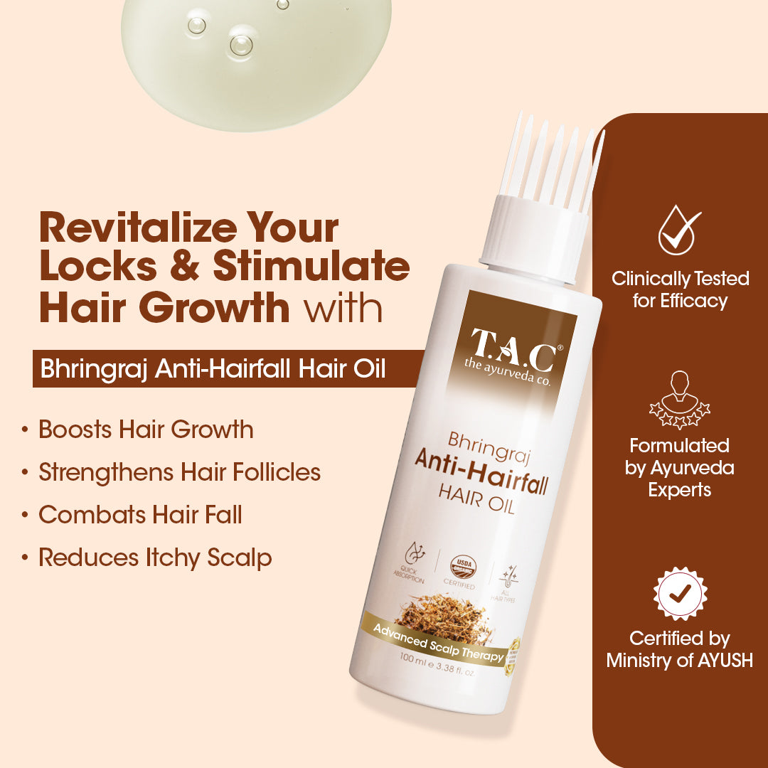 Nourish Dull Locks Enriched with Bhringraj, our hair oil revitalizes dull hair, restoring shine and vitality.