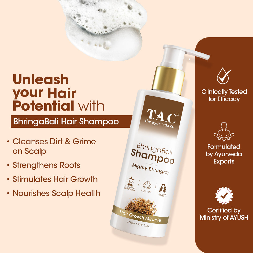 It depends on the length and thickness of your hair. Generally, a coin-sized amount of Bhringabali Hair Shampoo is sufficient for short to medium-length hair, while longer hair may require slightly more.