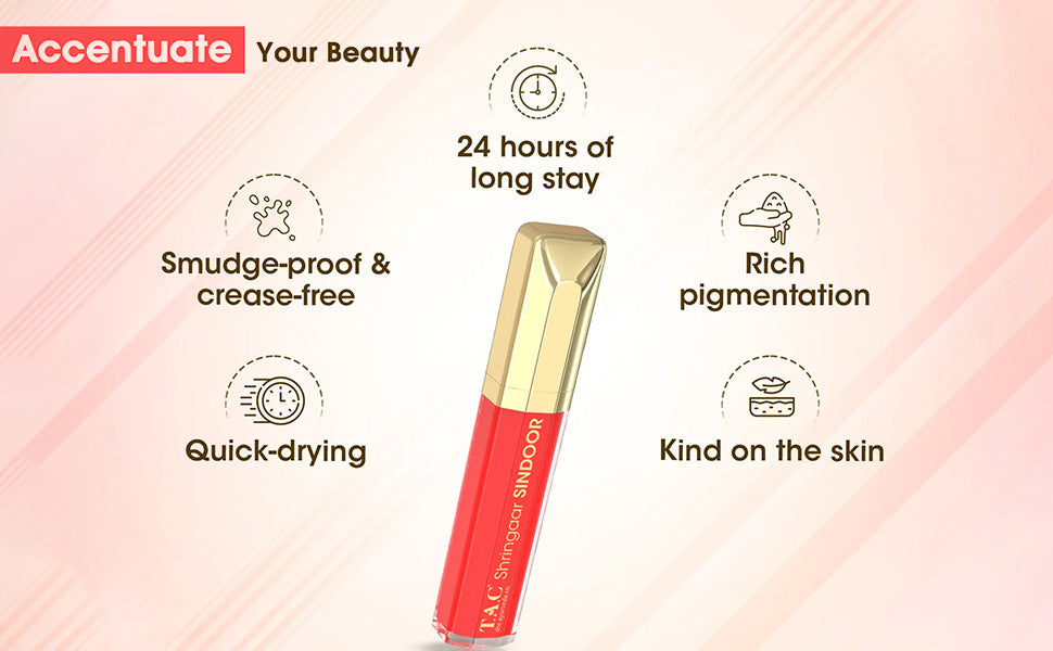 - Discover the richness of Ayurvedic beauty with our iconic Red Sindoor, featuring a quick-drying and smudge-proof formula.