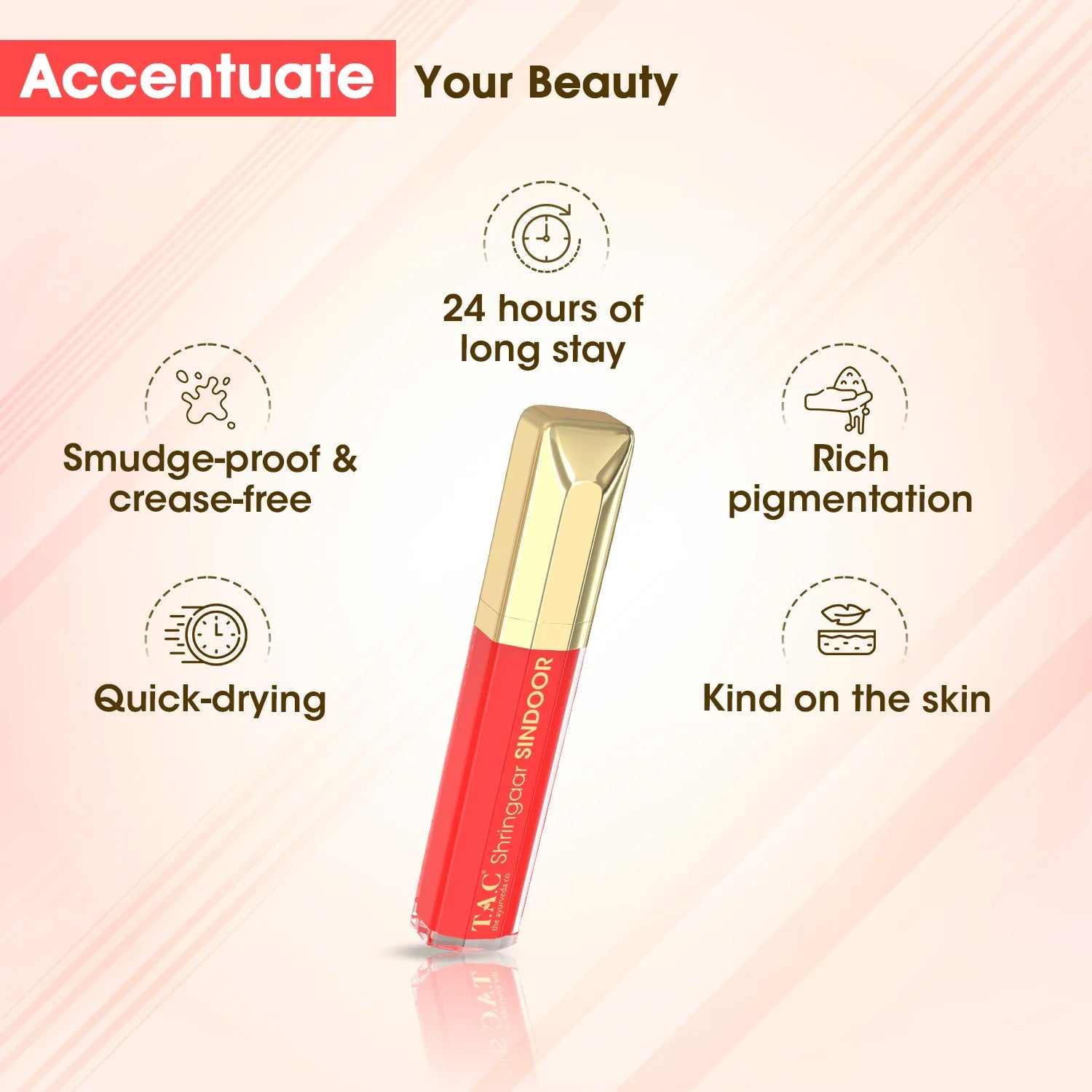 - Discover the richness of Ayurvedic beauty with our iconic Red Sindoor, featuring a quick-drying and smudge-proof formula.