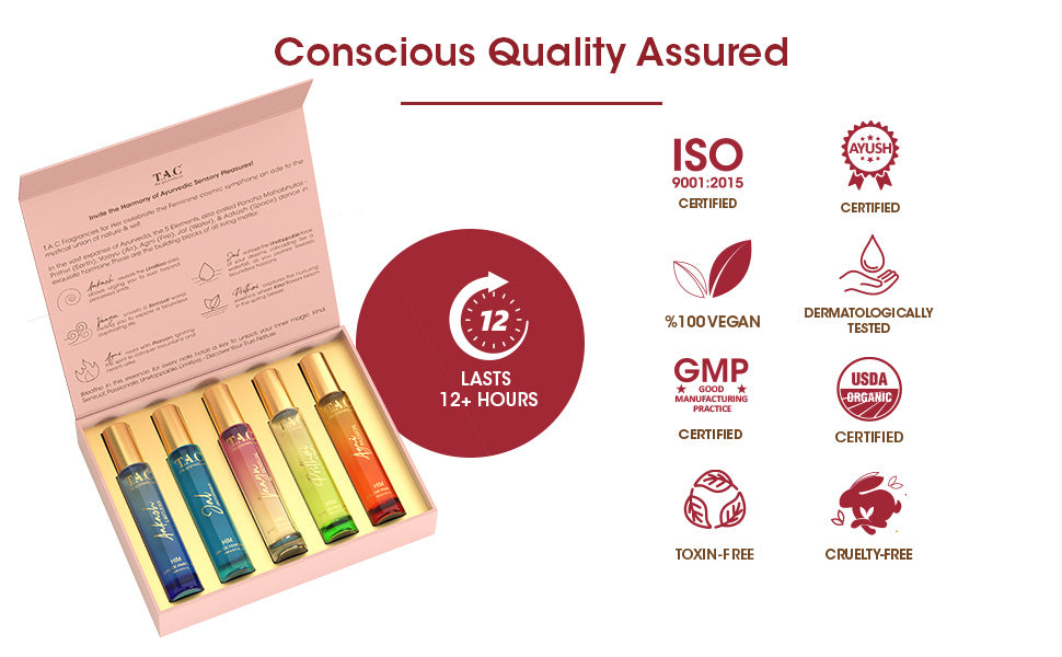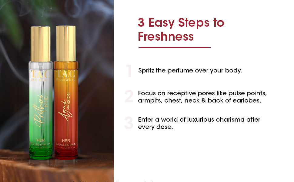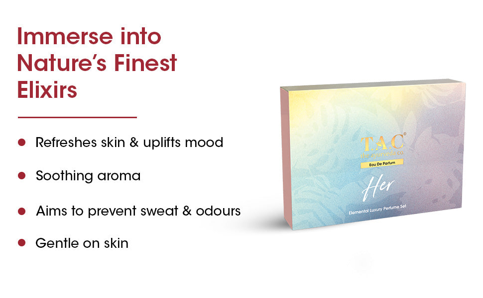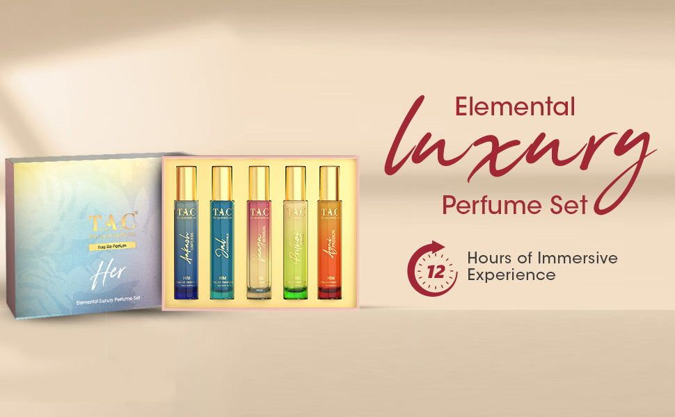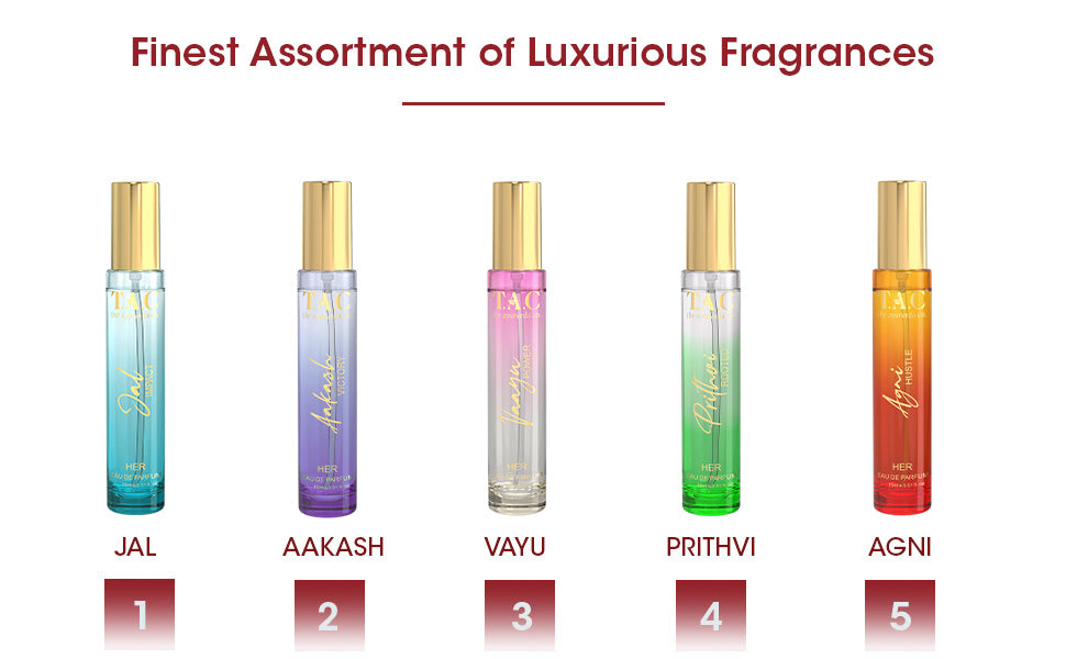 T.A.C Fragrances for Her is like if Ayurveda decided to dive into the world of modern perfumes. We're talking the big five: Prithvi (Earth), Vaayu (Air), Agni (Fire), Jal (Water), and Aakash (Space). With T.A.C, it's about grounding your inner goddess with nature and giving a nod to those Doshas. Dive into that Ayurvedic groove and have some fun with it!