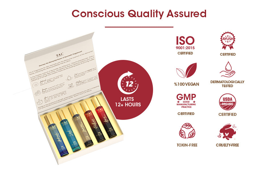 Dive in the unimaginable allure of Aakash and experience Vaayu's pure refreshment. Soak in Agni's authentic warmth, move gracefully with Jal's innate rhythms, and center yourself in Prithvi's everlasting embrace. These are not just scents; they are an homage to the elemental riches of nature, infused with Ayurvedic knowledge and a hint of joy.