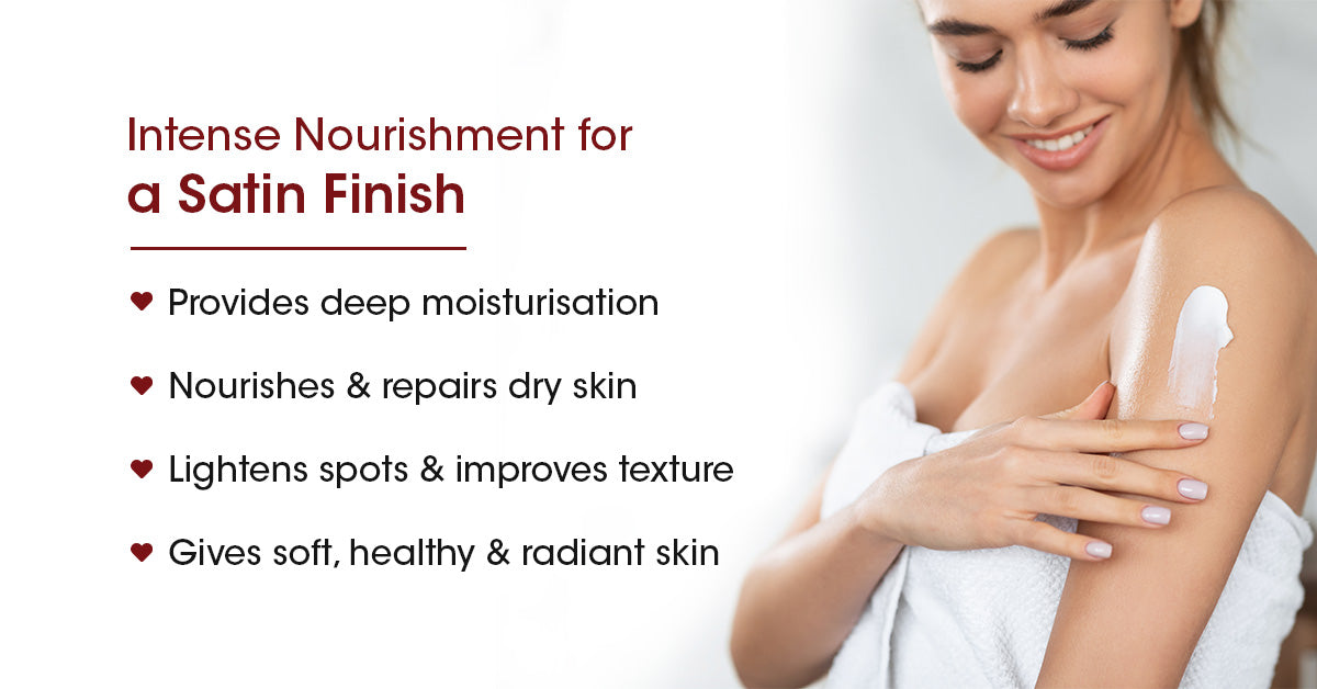 - INTENSE HYDRATION: Pamper your skin with the rich, creamy formula of Kumkumadi Body Lotion to restore skin moisture, maintain skin elasticity and keep your youthfulness intact.