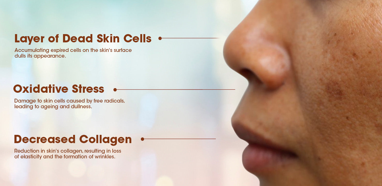 Brightening Essence Immerse in the golden glow of Saffron, renowned for its brightening power and ability to diminish dullness.