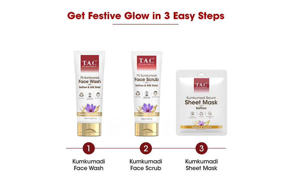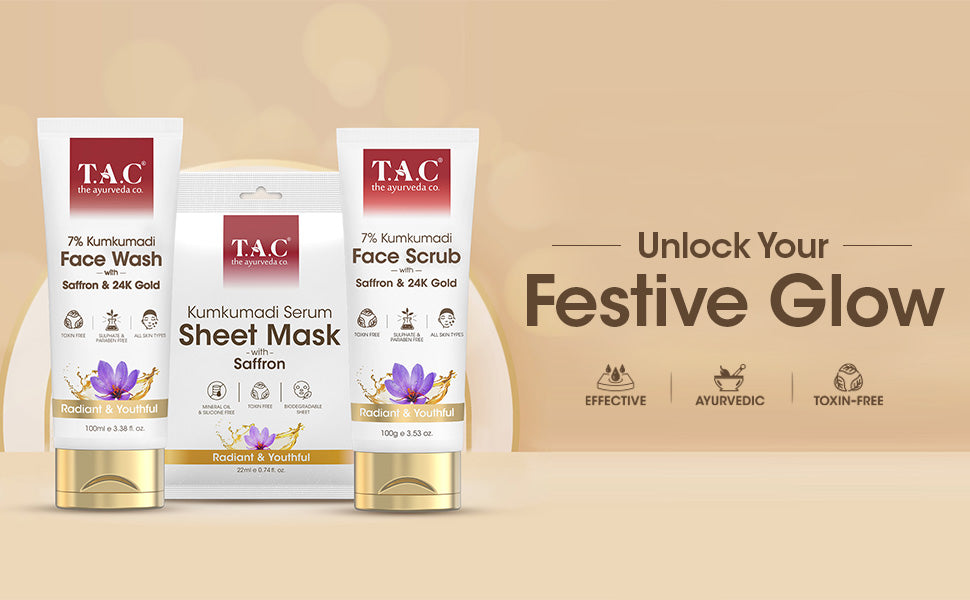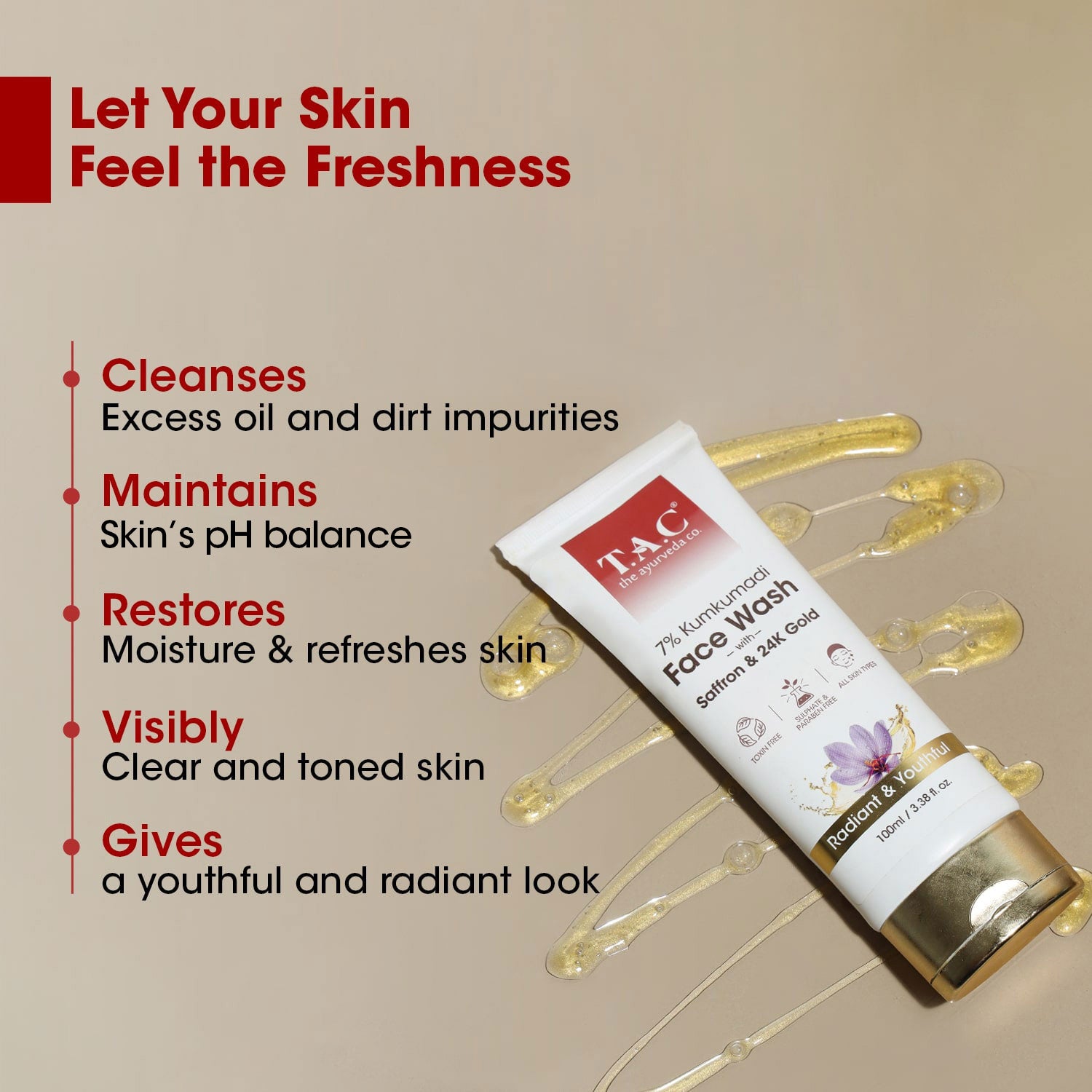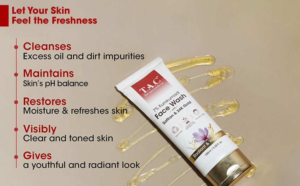 • Cleanse your skin with the Kumkumadi Face Wash, revealing a smooth, golden glow.