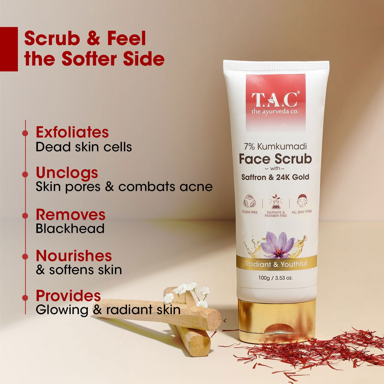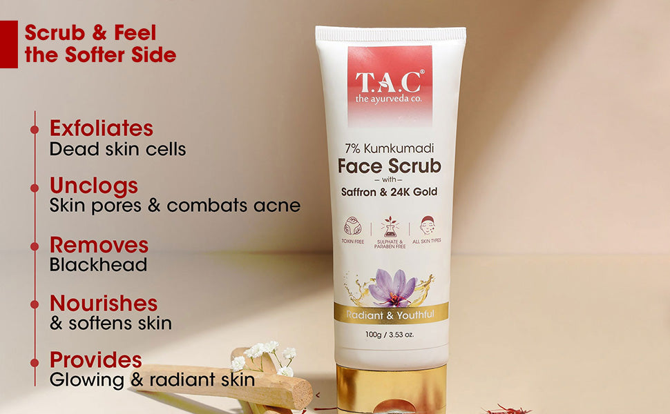 • Exfoliate gently with the Kumkumadi Face Scrub, leaving your skin visibly toned, smooth, and radiant.