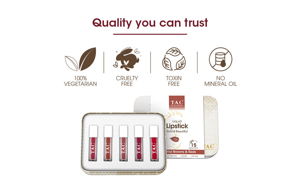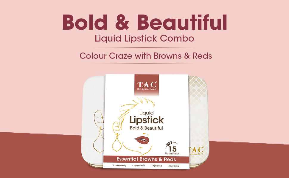 Transform your look with T.A.C’s Classic & Bold Matte Liquid Lipstick Kit, showcasing a curated assortment of five striking shades that effortlessly enrich your natural sense of making a statement and sensuality, amplifying your unique personal style and self-expression. Ideal for casual, festive, and upscale events, these liquid lipsticks glide on smoothly, bestowing a flawless, sumptuous pout. Our lightweight, fast-drying formula guarantees lasting comfort and wear, while the intense pigmentation provides a vivid yet refined matte finish.