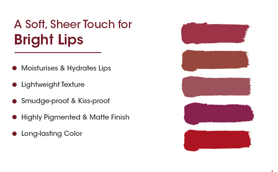 ENRICHED WITH ROSEHIP OIL AND VITAMIN E: Made with all-natural and ayurvedic ingredients, these liquid lipsticks moisturises your lips and gives a better application without making it dry SAFE TO USE: The liquid lipstick for women is free from harmful chemicals like paraben, and sulphates, making it suitable for your delicate lip skin