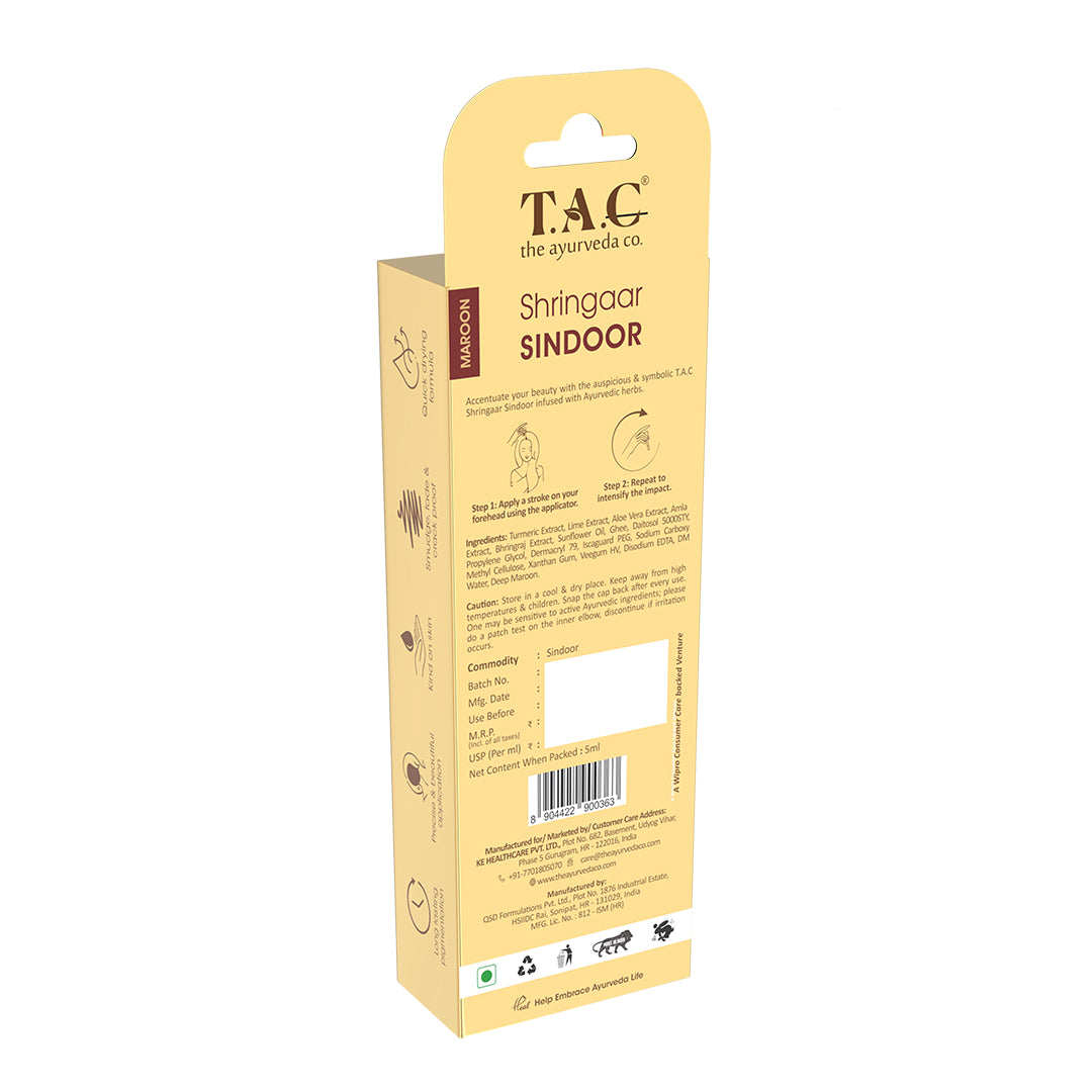 SAFE ON SKIN: Enriched with the best natural extracts and oils such as Turmeric, Lime, Aloe Vera, Amla, Bhringraj, Sunflower Oil, and Ghee, the T.A.C Sindoor is skin-friendly and perfect to wear.