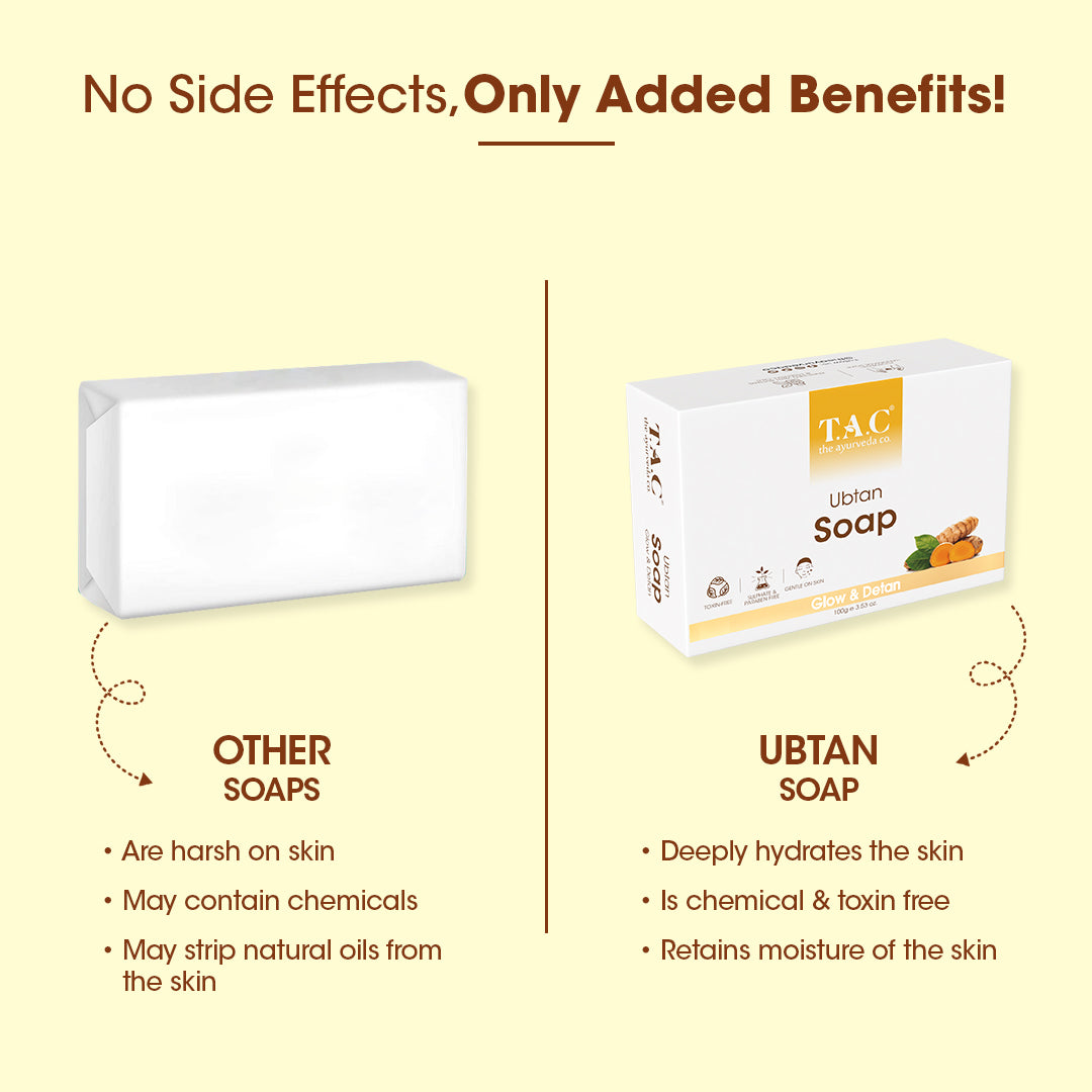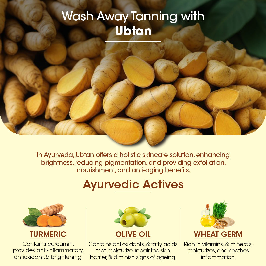 POWER OF UBTAN: Enriched with natural ingredients like Sandalwood, Kesar, Olive Oil, and others, it protects skin from free radical damage, cleanses and moisturizes skin and brightens it.
